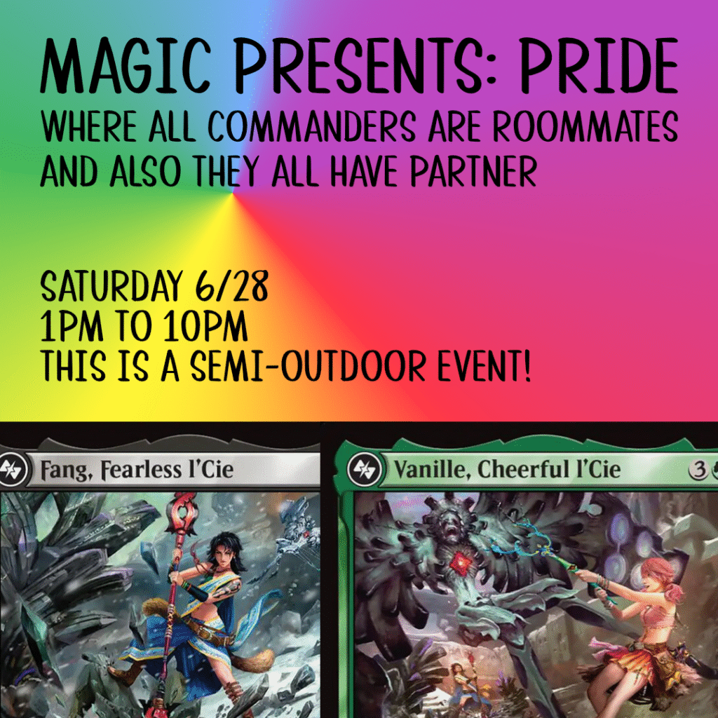 Just in time after the Final Fantasy release… ship your faves in Magic Presents: Pride, the returning event where all legendary creatures have Partner! Come join us for our biggest Magic event of the year; more updates including Special Guests… soon…