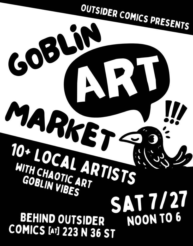 It’s coming next week: our very first art market! We’ll be hosting almost a dozen local artists with chaotic art goblin vibes in and behind the shop! Come through the store or down the Alley of Mystery and find your heart’s desire!